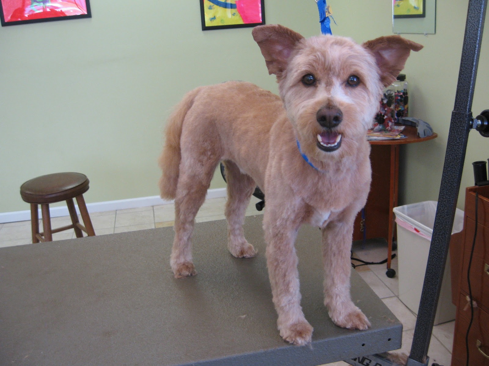 By the way, sometimes people ask why having their dog groomed is more expensive than having their own hair cut. There are MANY reasons why, but licking and wiggling are a couple of valid ones. Your hairdresser probably doesn't have to worry about cutting your tongue off.